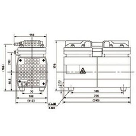 ・排気速度(L/min)50/60Hz:20/24・到達圧力(Pa):5.33×10[[の3乗]]・吸気口径(mm):9・電源(V):単相100・全幅(mm):118・全長(mm):242・全高(mm):178.0・電源コード長さ(m):1.8