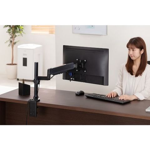 ・取り付け可能なディスプレイ:VESA マウントインターフェース 75×75mm、100×100mm・取り付け可能なデスク(天板厚み):10~80mm・画面回転範囲:±180°・傾斜角度:+35°・-35°・アーム旋回範囲:±135°・ディスプレイアームの使用で作業環境の改善を。