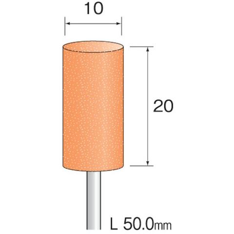 ・粒度(#):600 WAハード・形状:円柱・外径(mm):10・幅(mm):20・軸径(mm):2.34・最高使用回転数(rpm):15000・砥粒:WA・全長(mm):50.0・粒度:WA ハード#600
