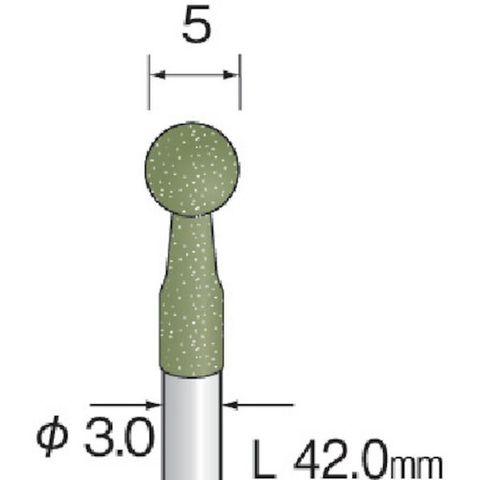 ・粒度(#):320 WAミディアム・外径(mm):5・軸径(mm):3.0・最高使用回転数(rpm):30000・全長(mm):42.0・粒度:WA ミディアム#320