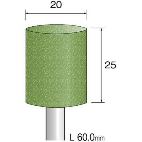 ・粒度(#):400 WAミディアム・外径(mm):20・幅(mm):25・軸径(mm):6.0・最高使用回転数(rpm):15000・全長(mm):60.0・粒度:WA ミディアム#400