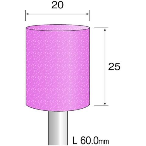 ・粒度(#):600・形状:円柱・外径(mm):20・幅(mm):25・軸径(mm):6.0・軸長(mm):35・最高使用回転数(rpm):15000・硬さ:ハード・全長(mm):60.0・粒度:WA ハード#600