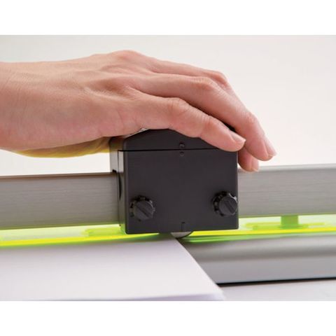 ・紙押さえ板に集光素材を採用し、裁断位置が把握しやすい40枚裁断機です。・回転刃はスライダー内部についており、安全にカッティング可能です。・ロック機構により紙押さえ板で用紙をしっかり固定して、裁断時のズレを抑制します。・スライダーを下に押しながらスライドさせる裁断方法は、少しの力で簡単に、そしてきれいに裁断可能です。・切れ味が悪くなったら刃やカッターマットを交換することで、良好なコンディションでご使用いただけます。