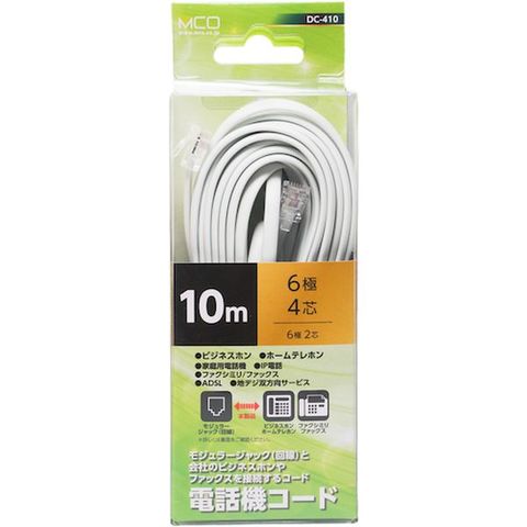 DC410WH ナカバヤシ(株) MCO 電話機コード 6極4芯 10m 白