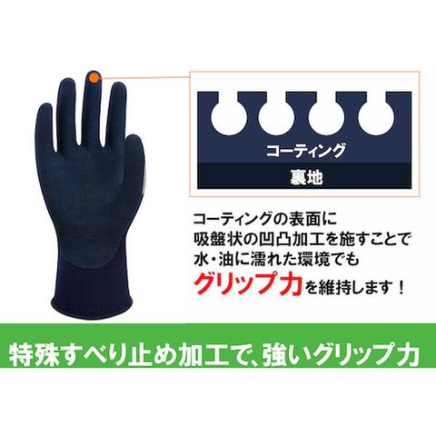 ・手の甲部分にマイクロファイバーなど2種類の繊維素材を組み合わせることにより、優れた伸縮性と通気性で、快適に作業を行なえる作業用手袋です。・天然ゴムコーティングの特殊すべり止め加工により、水に濡れたものでもしっかりグリップ力を発揮します。・物流、運搬作業の方におすすめです。