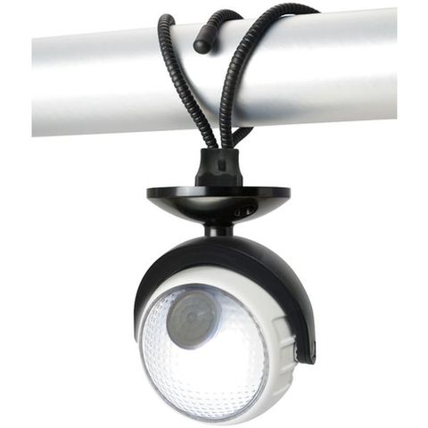 ・センサー探知方法:赤外線探知方式・センサー探知距離:最大約4m、最大約110度・点灯切替:常時点灯/センサーモード/オフ・電池寿命目安:センサーモード時1日約10回点灯で約半年、常時点灯時約6時間・設置場所:屋内、屋外(防雨構造)・仕様:360度回転可能