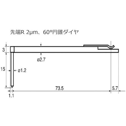 ・先端R 2μm、60°円錐ダイヤモンド、針部長さ(高さ)15mm