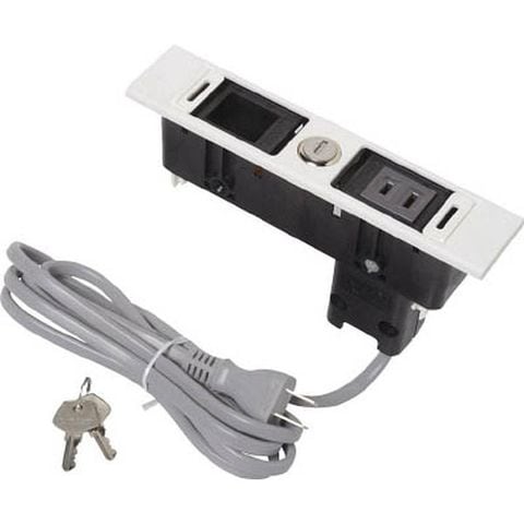 ・外寸:縦196×横42×高さ45mm(コードカバー除く)・ケース:PPE樹脂 ブラック・ケースカバー・フラップカバー:ABS樹脂 ホワイト・コードカバー:PPE樹脂 ブラック・埋込コンセント:ASSY グレー・差込プラグ:ASSY 2m グレー・カムロック:ASSY ニッケルめっき・キー:銅合金 ニッケルめっき