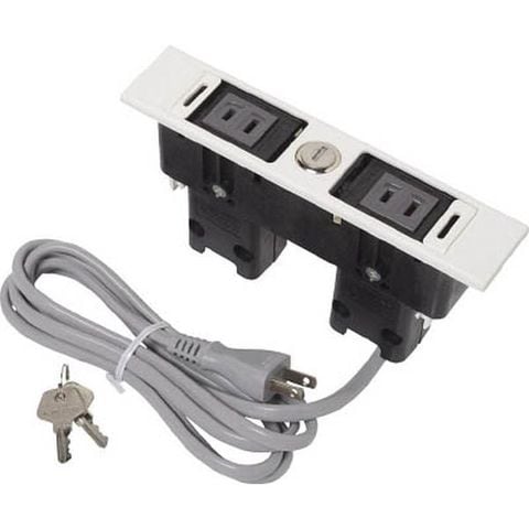 ・外寸:縦196×横42×高さ45mm(コードカバー除く)・ケース:PPE樹脂 ブラック・ケースカバー・フラップカバー:ABS樹脂 ホワイト・コードカバー:PPE樹脂 ブラック・埋込コンセント:ASSY グレー・差込プラグ:ASSY 2m グレー・カムロック:ASSY ニッケルめっき・キー:銅合金 ニッケルめっき