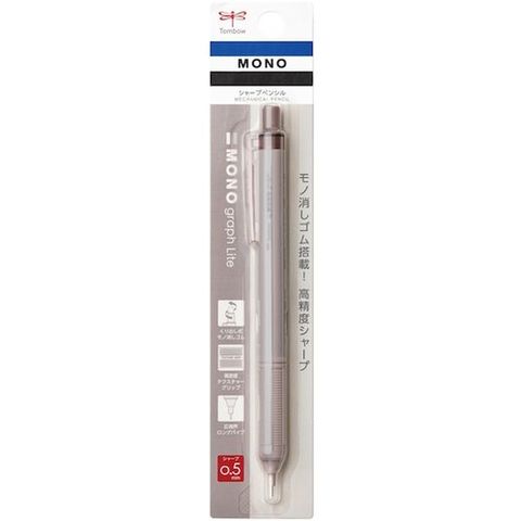・高精度筆記具モノグラフシリーズに、エントリーモデルのモノ消しゴム搭載シャープペンシル「モノグラフライト」がラインナップされました。・繰り出し式消しゴムにより、素早く確実に修正でき、細かいところまで確実に筆記できます。・全長約4mmの広視界ロングパイプで、ペン先が見やすいです。・高密度テクスチャーグリップで軽い力でもしっかり握れます。
