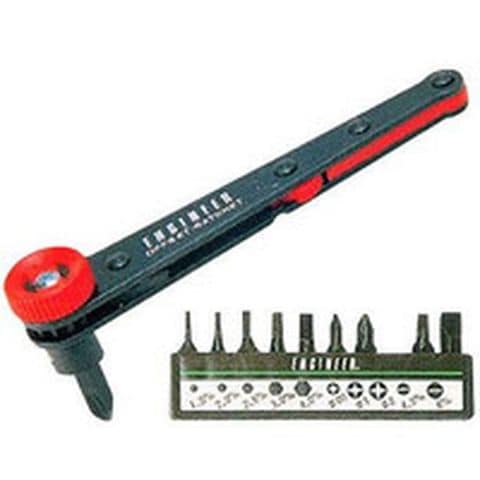 ・オフセットラチェットに使用頻度の高い[[+]]/[[-]]および六角ビットをセットしています。・ラチェット機能と早回し機構付で、作業効率が向上します。