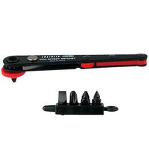 ・先端極薄22mmで狭い場所での作業に便利です。・オフセットラチェットに使用頻度の高い[[+]]/[[-]]ビットをセットしています。・早回し機構付です。