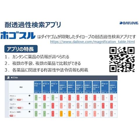 ・機械油、一部薬品にお使いいただけるディスポ手袋となっております。・有機溶剤全般に使用できる製品ではないのでご注意ください。