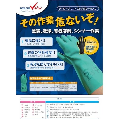 DVYN5011LL ダイヤゴム(株) DAILOVE 化学防護手袋 ダイローブバリュー YN5011 LLサイズ