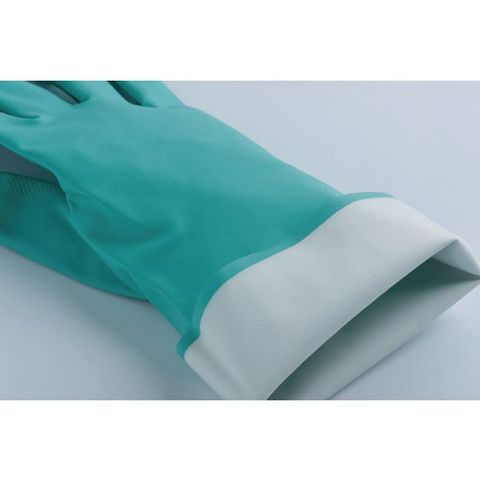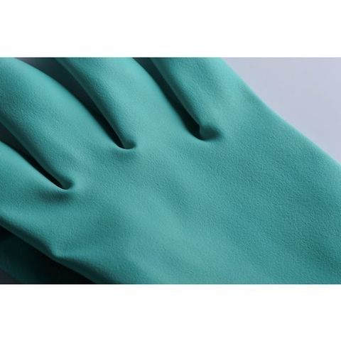・色:グリーン・サイズ:S・全長(cm):33・手のひら周り(cm):19.4・中指長さ(cm):7.5・厚さ(mm):0.4・EN374規格:JKLOPT・すべり止め:グリップ
