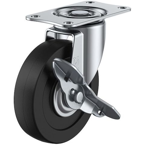 プレート式 自在 キャスター 導電ゴム 車輪径100mm ストッパー付き Eタイプ E-S型 取付寸法82×40