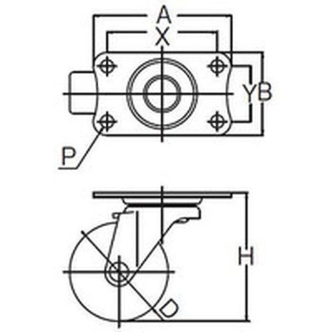 ・車輪径D(mm):75・タイプ:自在式・許容荷重(daN):50・許容荷重(kgf):51・車輪幅(mm):21・取付高H(mm):92・取付座A(mm):70・取付座B(mm):42・取付ピッチX(mm):56・取付ピッチY(mm):28・取付穴径P(mm):6.5・許容荷重(N):500