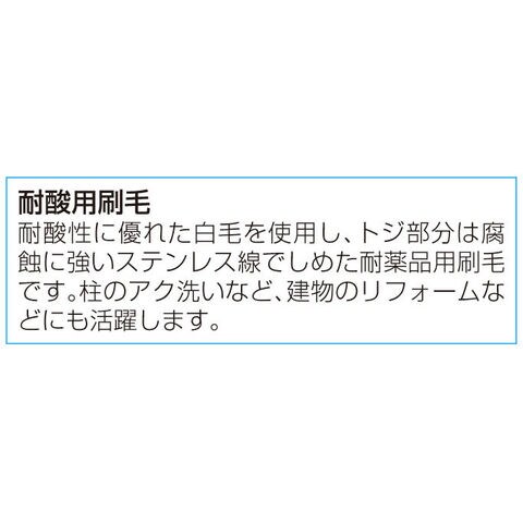 濃度:塩酸:35%以下、硫酸:30%以下、硝酸:50%以下に使用可能です。耐酸用刷毛