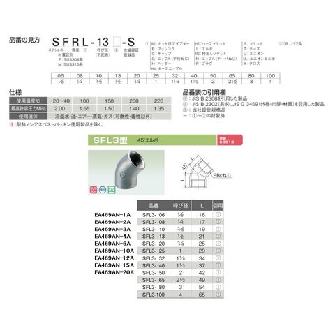 EA469AN-1A エスコ ESCO Rc 1/8" 45°エルボ(ステンレス製)