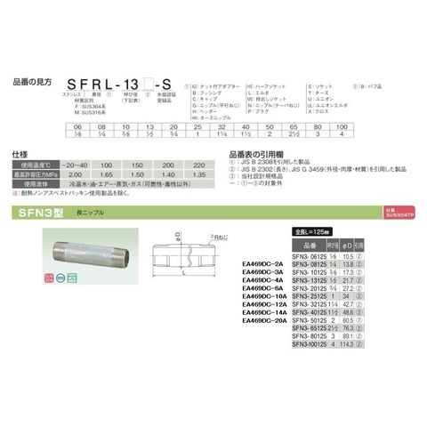 EA469DC-2A エスコ ESCO R 1/4"x125mm 両ねじニップル(ステンレス製)