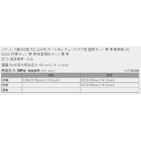 ●最高圧力:常温の水・油・ガス:4.11MPa(42kgf//cm2)、飽和蒸気:0.98MPa(10kgf//cm2)