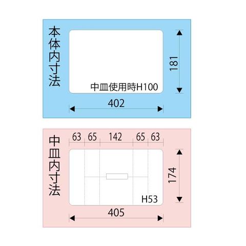 ●内寸(W×D×H):402×181×100mm(中皿使用時)