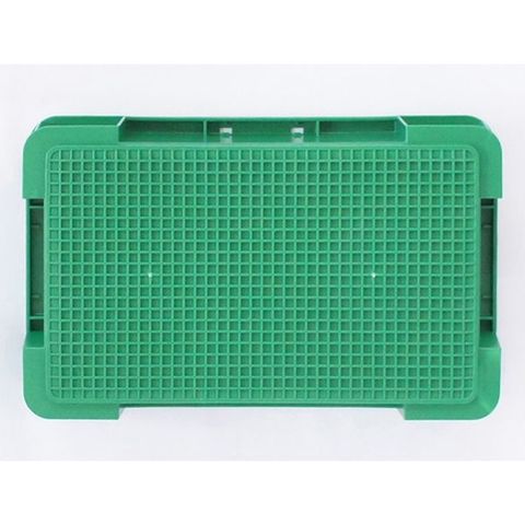 底面に格子状のリブ(平面部を補強するためその面に垂直に立てられた板形状)を設置しております。リブの高さによって曲げ強度は決まり、リブが高ければ高いほど、高い強度を示します。工業用コンテナに多く採用され、特に油を使う業界では膨潤(樹脂が油等を吸収して体積が増加する現象)による撓みを抑制する効果があります。