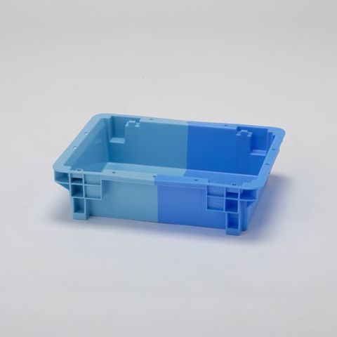 2色コンテナ(SNコンテナ)で採用されているタイプで、同色・同形状スタッキングタイプとも言います。製品を水平に180°回転させることで、スタッキング(積み重ね)とネスティング(収納)の二つの形態がとれるタイプです。スタッキング時は商品を収納しての搬送や保管に利用できます。空箱時はネスティングさせることで、容積を小さくでき、空箱の保管場所や運送費の削減が可能です。スタッキング時の耐荷重性を重視した設計で、段積み時の強度に優れています。製品詳細スペック内の「圧縮荷重」(スタッキングした製品の最大圧縮荷重を示しています。その値を4で割った数値以内をご使用の目安としてください)をご確認ください。