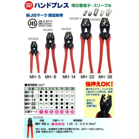 38mm2の圧着が手動でできます。