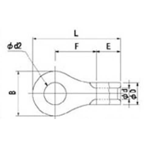 ●寸法:φd2:3.7mm B:5.6mm F:4.7mm E:4.5mm φD:2.5mm φd:1.4mm