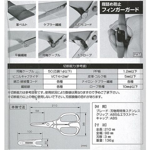 ケブラー繊維や電線ケーブルはもちろん、革ベルトやロープ類のカットに最適です。