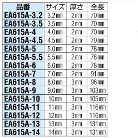 EA615A-5 エスコ ESCO 5.0x5.0x 78mm/2.0mm 両口スパナ(薄型)