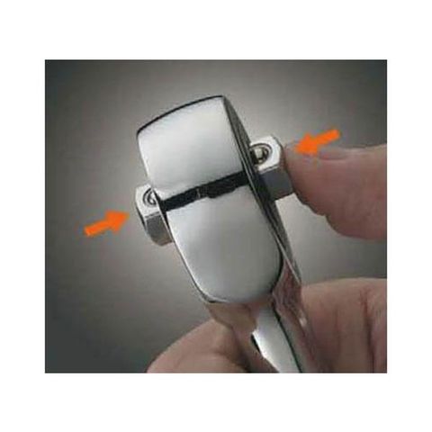 グリップとラチェット部が連動しており、振り幅のない狭所でもグリップを回転させると締め付け作業が行えます。