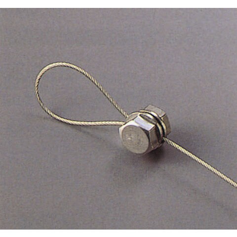 軸のボルト部分にワイヤー2本が通る穴があいています。その穴にワイヤーを通してナットを上下から閉めてください。