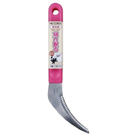 ノコ刃で引くように草を刈り取ります。