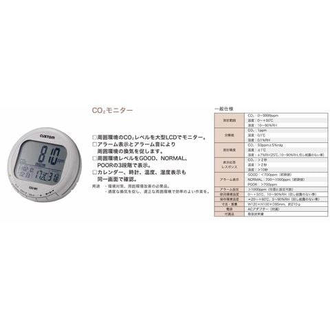 ●測定範囲…CO2:0~9999ppm温度:0~+50℃湿度:10~90%RH