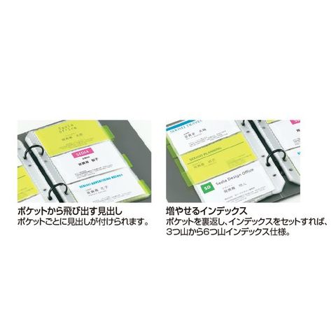 使用頻度の高い名刺やカードに、カラーマークができるインデックス付。
