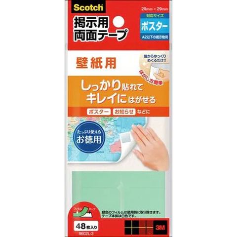 壁紙にしっかり貼れて、壁紙に傷やべたつきを残さずはがせる、掲示用両面テープ