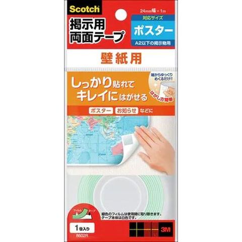 壁紙にしっかり貼れて、壁紙に傷やべたつきを残さずはがせる、掲示用両面テープ。