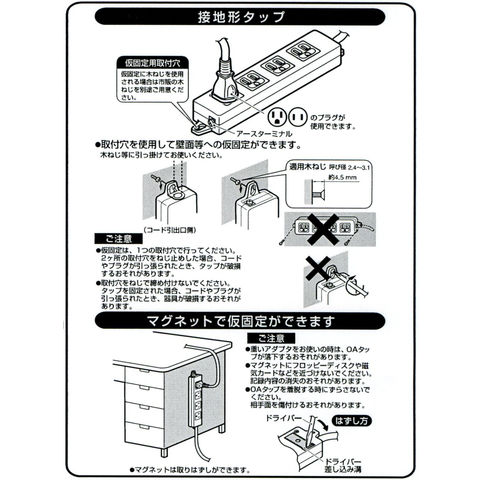 EA815GL-211 エスコ ESCO AC125V/15Ax1.0m OAタップ マグネット付