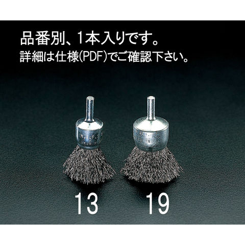 EA819BV-19 エスコ ESCO 19mm/6.4mm軸 エンド型軸付ブラシ スチール製