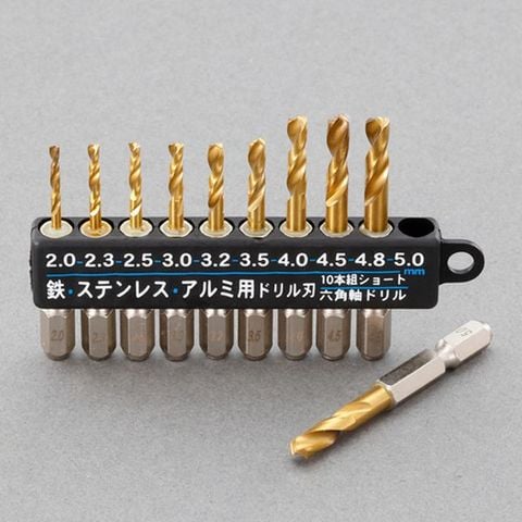 EA824DF-100 エスコ ESCO 2.0-5.0mm/10本組 六角軸ドリル(HSS)