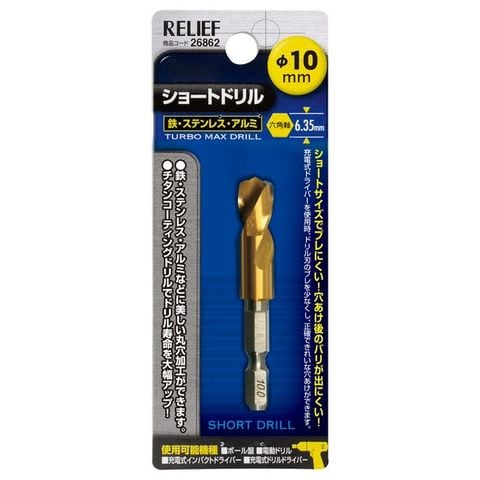 EA824DF-10 エスコ ESCO 10.0x 65mm ドリルビット(1/4"六角軸・1本)