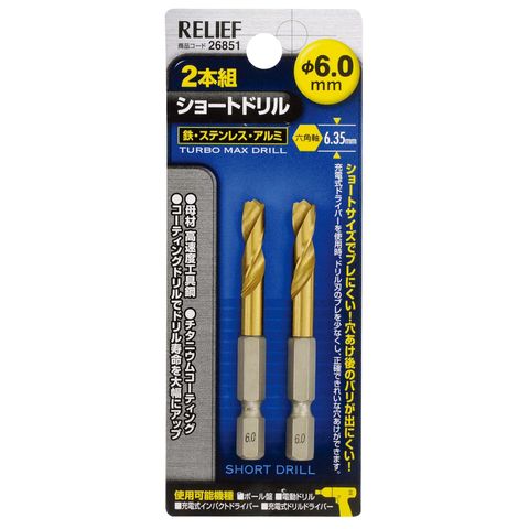 EA824DF-6 エスコ ESCO 6.0x 65mm ドリルビット 1/4"六角軸・2本