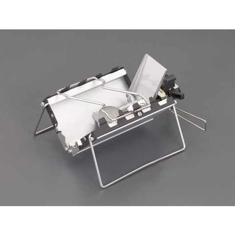 収納時には厚さ25mmという薄さになるシングルバーナー