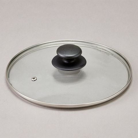 材質:強化ガラス(全面物理強化)、縁リング:ステンレス鋼、つまみ:フェノール樹脂(耐熱温度150℃)、つまみの座板:ナイロン(耐熱温度180℃)