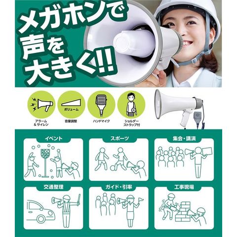 EA916X-65 エスコ ESCO 20W メガホン(サイレン・ホイッスル音付/ショルダー型)