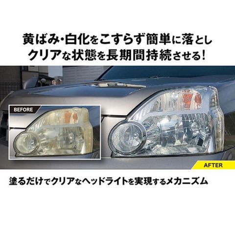 黄ばみや白化をこすらず簡単に落とし、クリアな状態を長期間持続させるヘッドライト用クリーナー&コーティング剤。