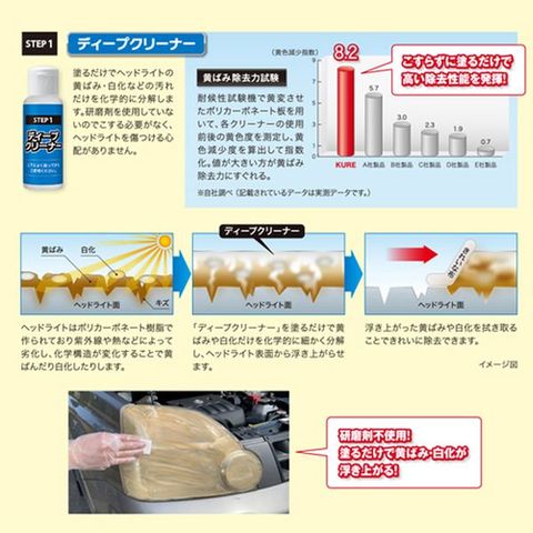 用途:自動車の樹脂製ヘッドライト・テールランプ・バイザーの洗浄及びコーティング