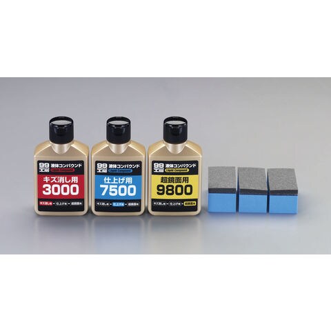 赤:キズ消し用、青:仕上げ用、黄:超鏡面用のセット